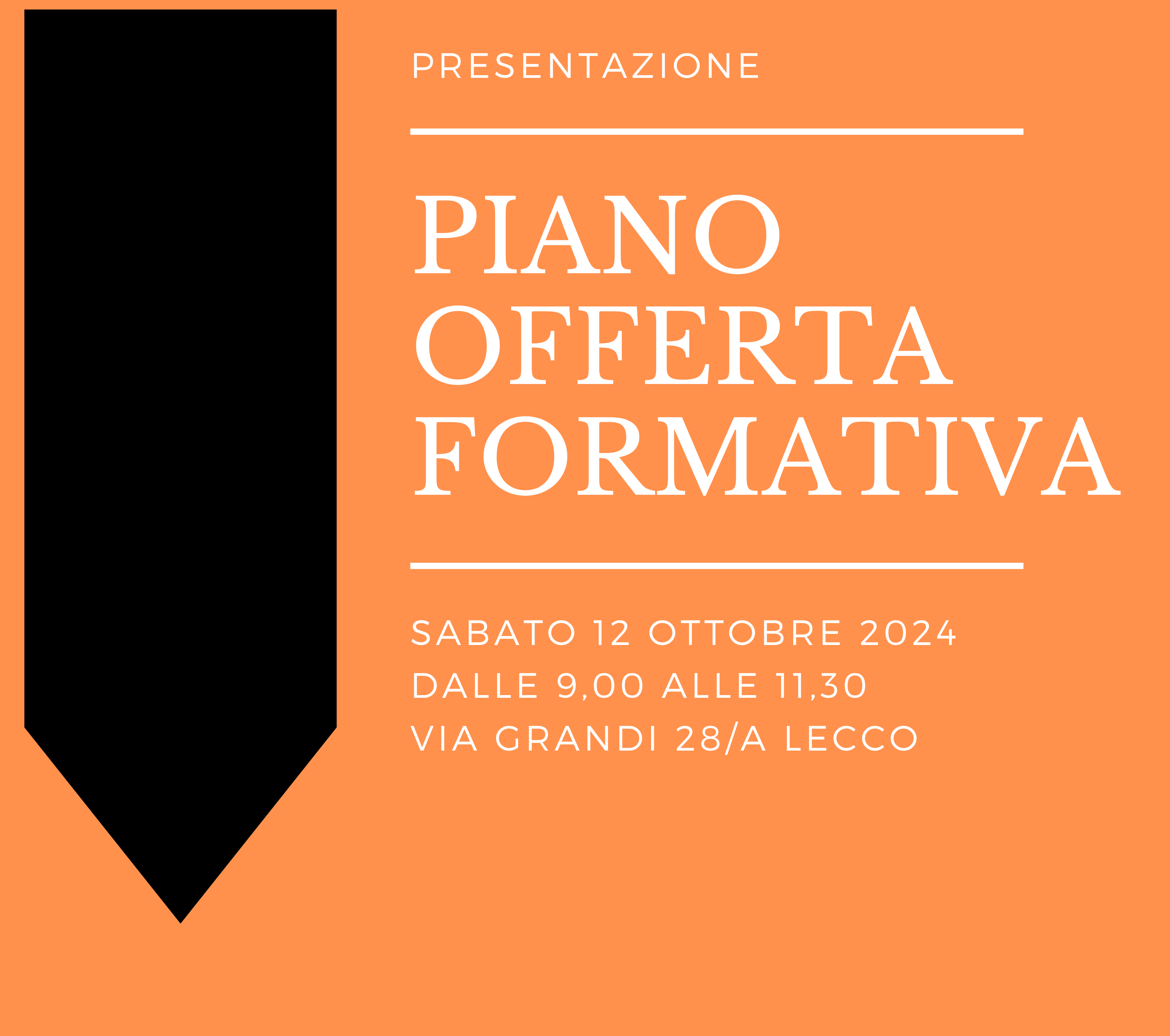 Sabato 12 ottobre 2024 dalle 9,00 alle 11,30 presso la nostra sede di via Grandi 28/a (Lecco), presenteremo a tutte le famiglie il Piano dell’Offerta Formativa 2024-2025. Per noi è importante condividere questo momento di riflessione sui contenuti della proposta formativo-educativa che i ragazzi hanno iniziato a vivere suddivisi nei diversi gruppi classe e corsi di qualifica. SCARICA