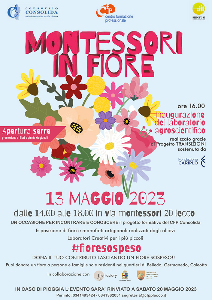 Sabato 13 maggio dalle 14.00 alle 18.00 torna Montessori in Fiore, il nostro tradizionale evento presso la sede di via Montessori 20.